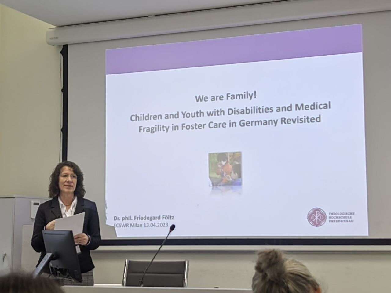 Am 13. April 2023 sprach Dozentin Dr. phil. Friedegard Föltz auf der European Conference for Social Work Research (ECSWR) in Mailand (Italien). Das Thema ihres Vortrages lautete: “We are Family – Children with Disabilities and Medical Fragility in Foster Care in Germany Revisited” („Wir sind Familie – Kinder mit Behinderungen und medizinischer Fragilität in Pflegefamilien in Deutschland“). Friedegard Föltz ist an der Theologischen Hochschule Friedensau als Studiengangsleiterin und Dozentin für den Bachelorstudiengang Soziale Arbeit – im Direktstudium und im Teilzeitstudium – tätig. Ihr Vortrag auf der international bedeutenden Konferenz fand viel Beifall.