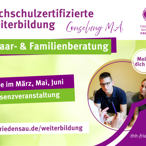 Der Masterstudiengang Counseling (Fachbereich Christliches Sozialwesen) bietet Pastorinnen und Pastoren – ebenso wie in der Arbeit tätigen Pastoralassistenten mit erfolgreichem Bachelor-Abschluss – eine hochschulzertifizierte Weiterbildung ...