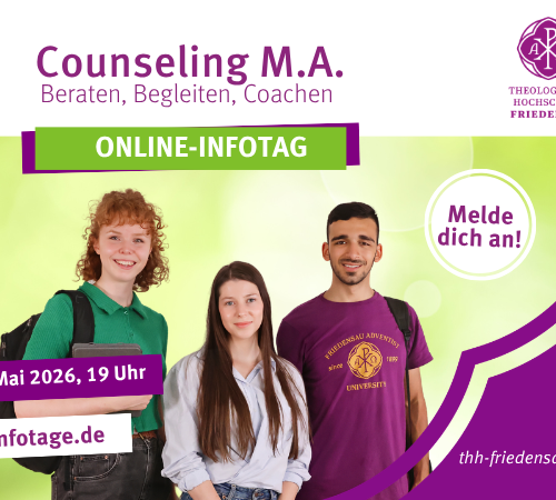 Vom 23. bis 28. März 2026 lädt die Theologische Hochschule Friedensau zur Frühjahrs-Besinnungswoche 2026 ein. Als Gastreferentin wird Juliane Schmidt, Pastorin und Jugend-abteilungsleiterin der Adventjugend Mittelrhein (Hessen, Rheinland-Pfalz ...